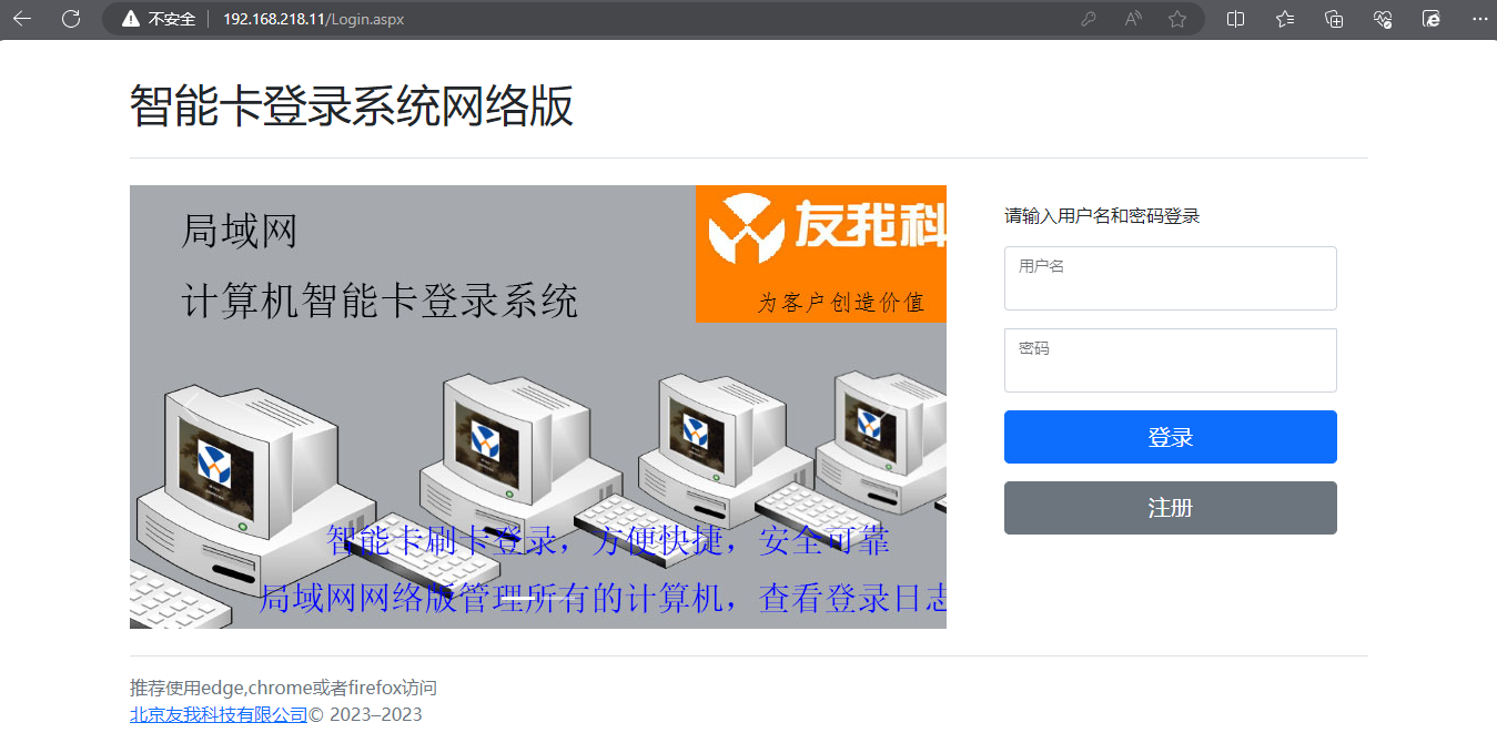 如果沒有安裝友我科技智能卡登錄網絡版讀卡器管理程序, 則點擊下載, 安裝完成後,刷新該界面,即可使用讀卡按鈕。