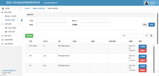 添加完成後,在智能卡管理界面有相應的智能卡列表: