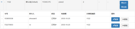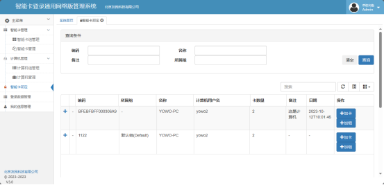 智能卡邦定界面顯示所有的計算機列表,點擊列表前面的+,可以顯示當前計算機下邦定的所有的智能卡。