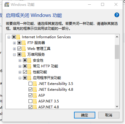 1.已經安裝互聯網信息服務(IIS)。IIS安裝可以使用控制面闆中程序-打開或關閉windows功能, 或者在cmd中輸入OptionalFeatures