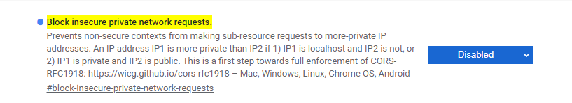 在浏覽器地址欄中輸入:chrome://flags/#block-insecure-private-network-requests