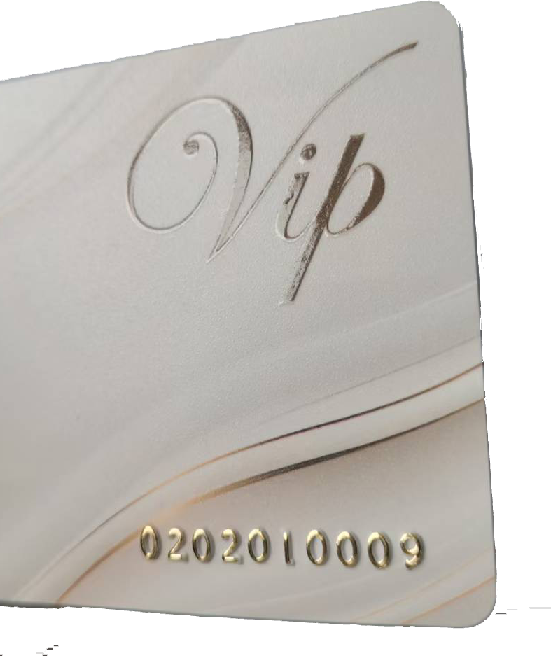 實際(jì)樣卡展示,正面小金凸編(biān)碼和磨砂+uv工藝,背面條碼+二維碼: