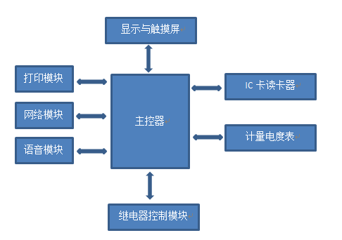 充電樁類似於(yú)汽車的加油槍,可以爲不同的汽車選擇合适的電壓進行充電,並(bìng)且採用電量計量的方式,通過預先發售的非接觸IC卡進行付費,充電樁的結構如下: