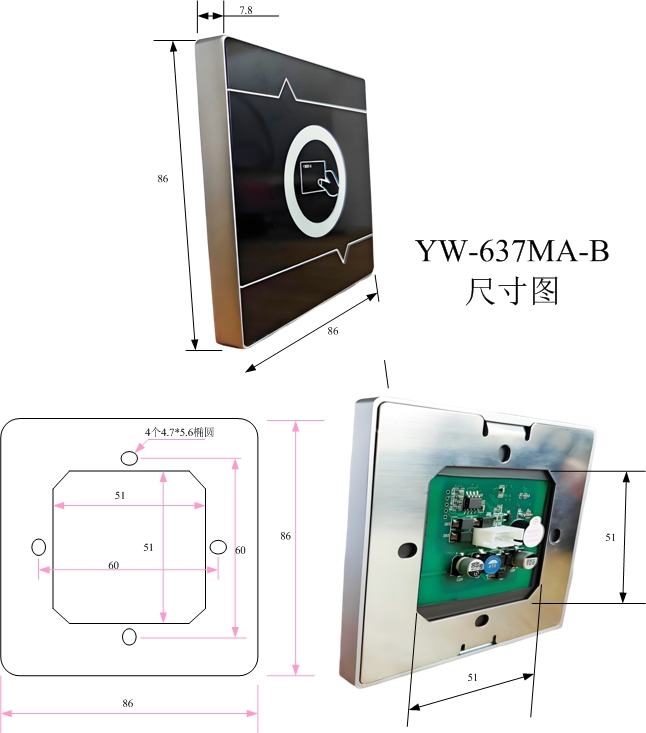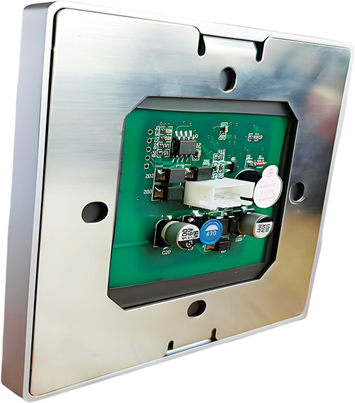 超薄合金外殼(ké)配以亞克力面闆,可以直接安裝在金屬(shǔ)闆闆上