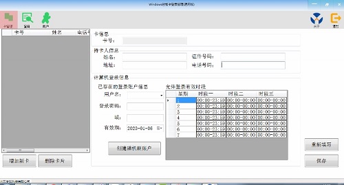 每張IC卡可以配置時間段,超出時間段不能登陸,如果已經登錄,超出時間段則會(huì)按照設定的方式鎖屏、注銷或者關(guān)機。